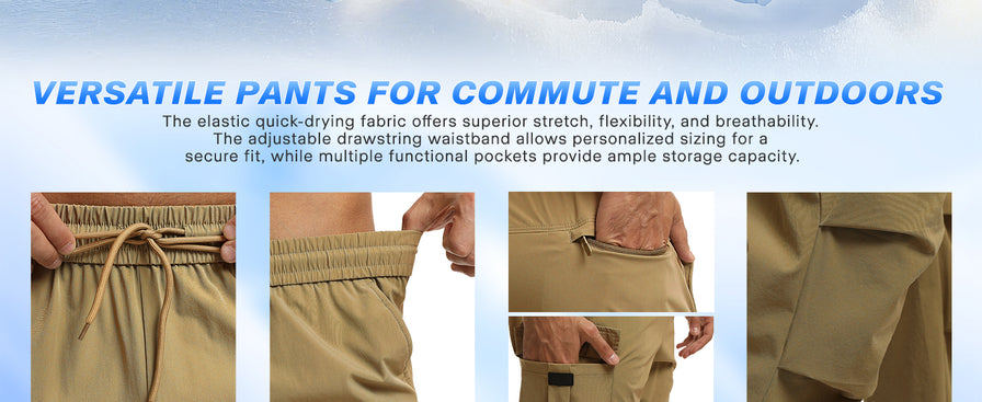 - Durable Nylon 4-Way Stretch Fabric: The men’s hiking cargo pants are crafted from premium 70D nylon material, offering exceptional durability and abrasion resistance to withstand tough outdoor conditions. The 4-way stretch fabric ensures a soft, breathable wearing experience while providing unparalleled flexibility during movement. Whether stretching, bending, or making quick movements, this advanced fabric adapts to your every move without restriction.