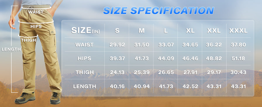 - Practical Pockets: Designed for functionality, the men’s hiking athletic pants include multiple pockets to meet your storage needs during outdoor adventures. Two spacious side cargo pockets easily accommodate essentials like your phone, wallet, or keys. Additionally, two angled hand pockets provide quick access to smaller items such as earbuds, energy bars, or tools.