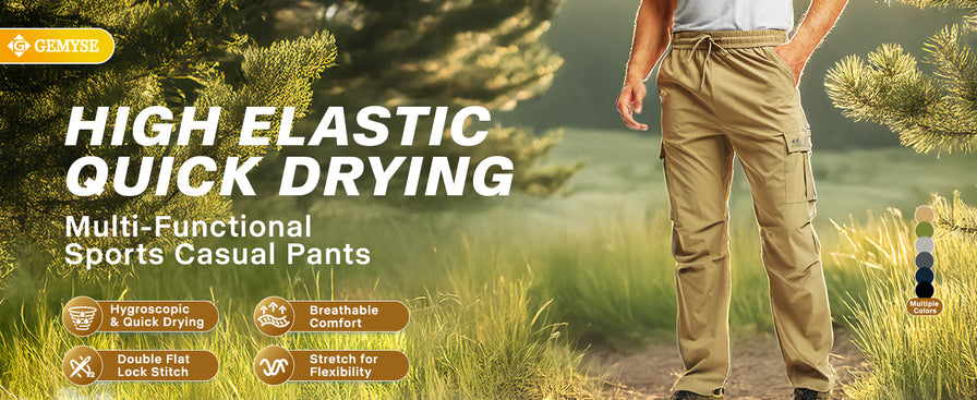 GEMYSE Men's Cargo Pants Joggers Hiking Stretch Sweatpants Outdoor Quick-Dry Lightweight Breathable Pant with Multi Pockets