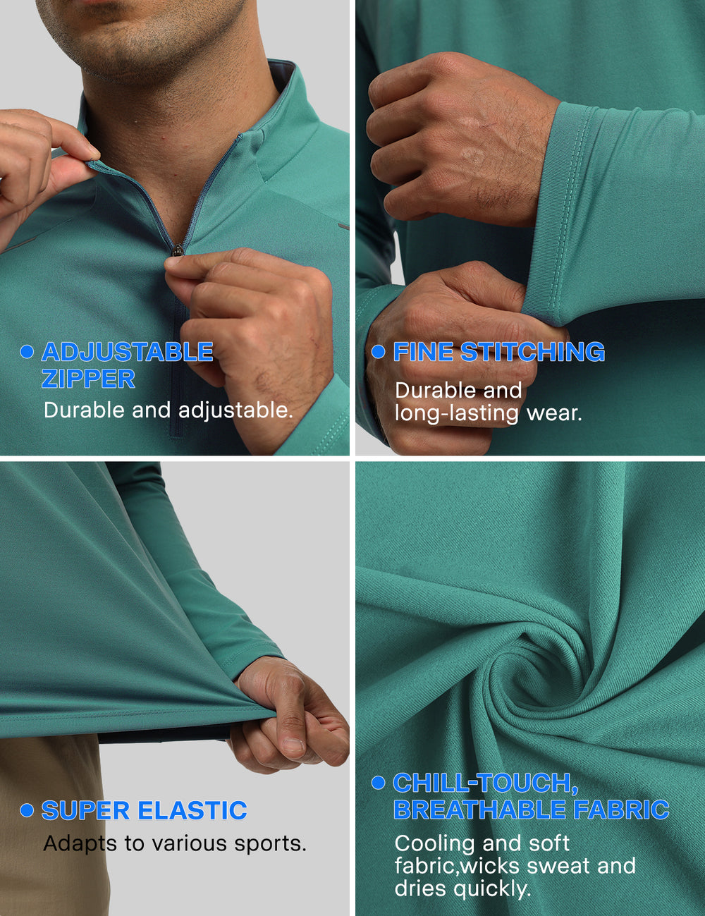 Functional 1/4 Zip Collar Design: Quarter-zip collar allows easy ventilation and adjustable comfort.
