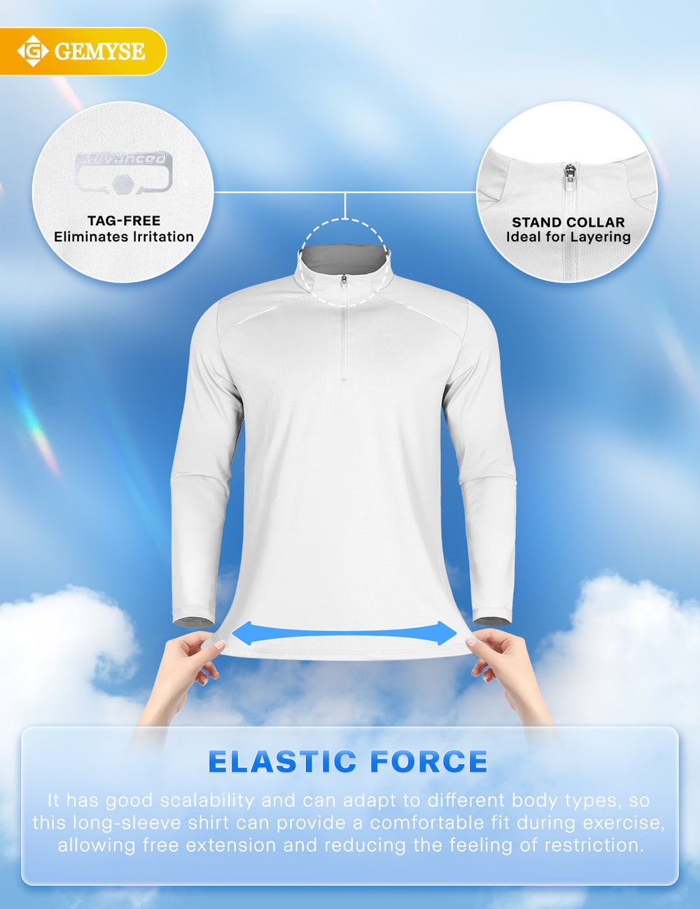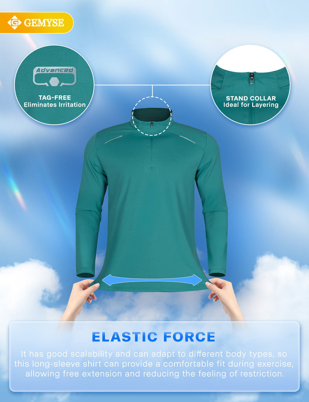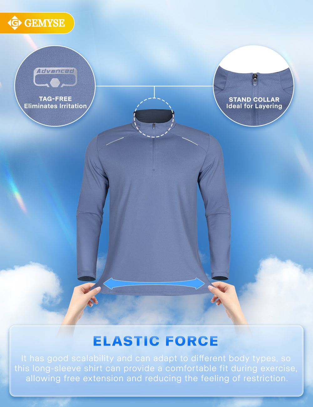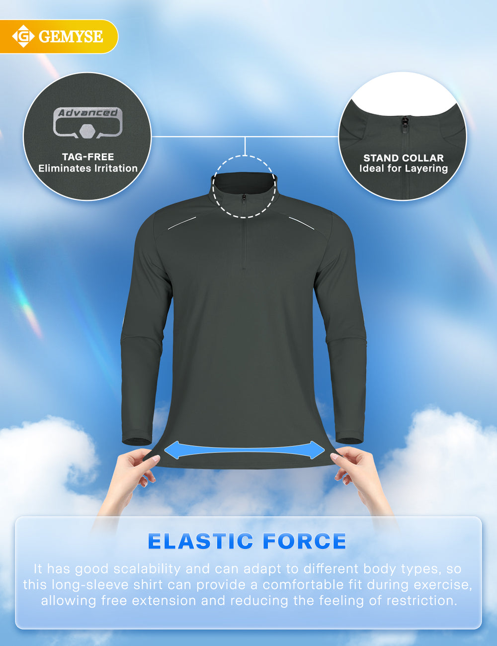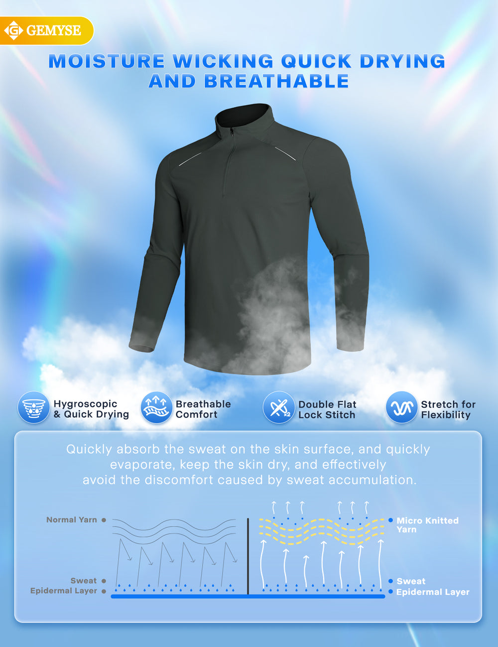 GEMYSE® Men's Quarter Zip Pullover Long Sleeve Running Shirt 1/4 Zip Quick Dry Athletic Workout Shirts