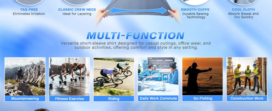- Suitable for Any Occasion: With its excellent functionality and stylish look, the men's crew neck running shirt is a versatile addition to your wardrobe. It’s not only ideal for outdoor activities like fishing, swimming, running, and hiking but also suitable for everyday casual wear. Its multi-functional design makes it an ideal choice for summer sports and leisure.