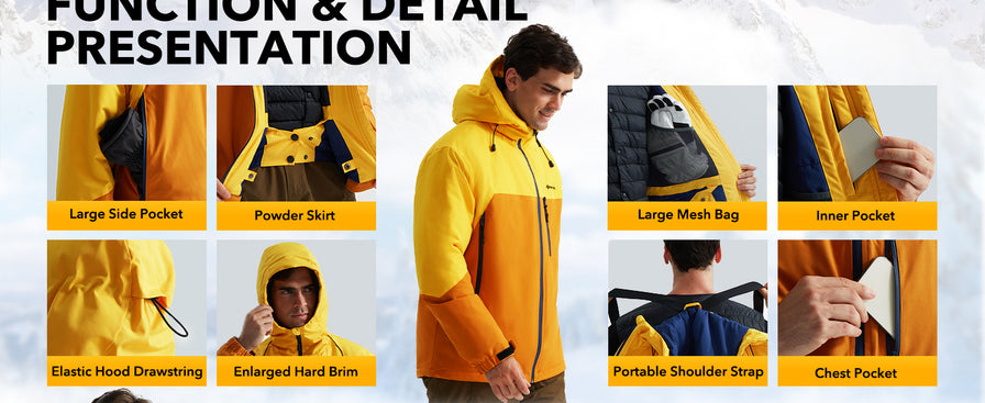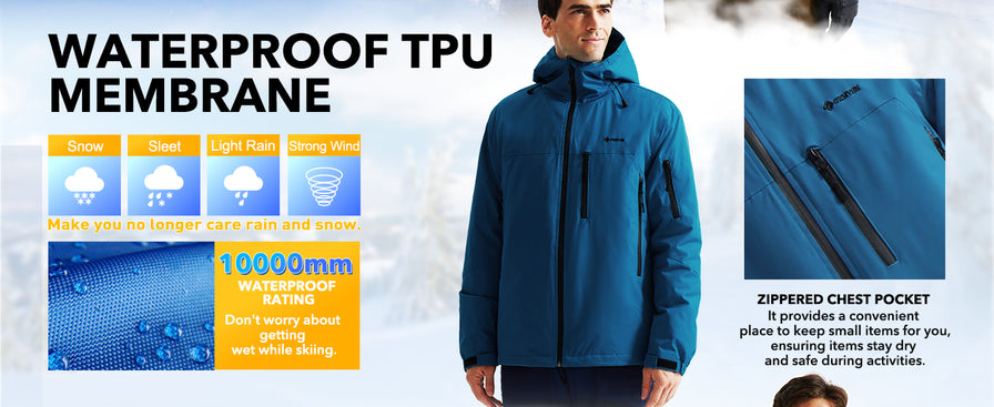 - Occasions: The men's ski jacket is perfect for a wide range of winter outdoor activities such as skiing, snowboarding, hiking, camping, cycling, and other winter outdoor activities.It is easy to fold and pack, making it ideal for long-term wear and outdoor adventures. Whether you're skiing or just enjoying the winter outdoors, this waterproof, breathable, multi-pocket ski jacket is the ultimate choice.