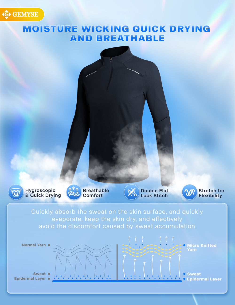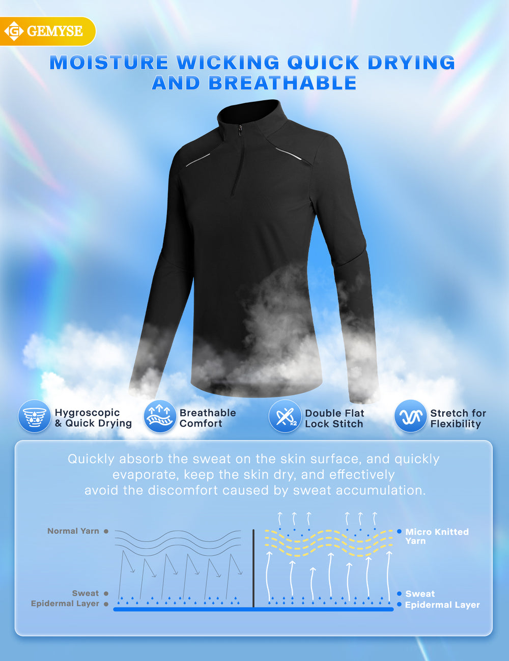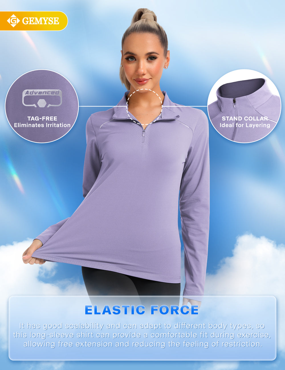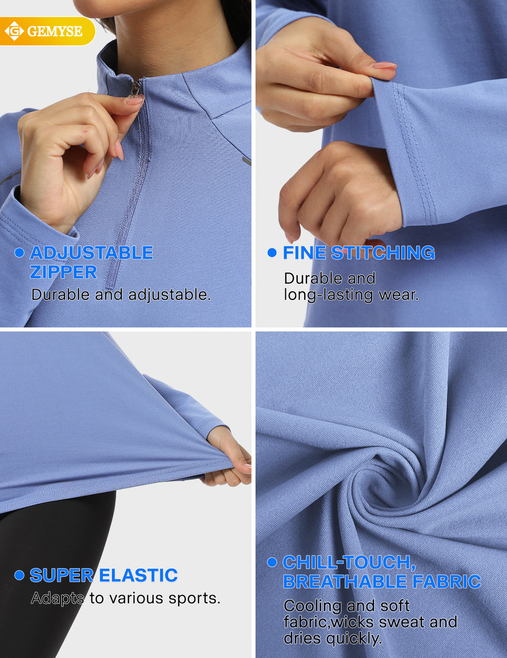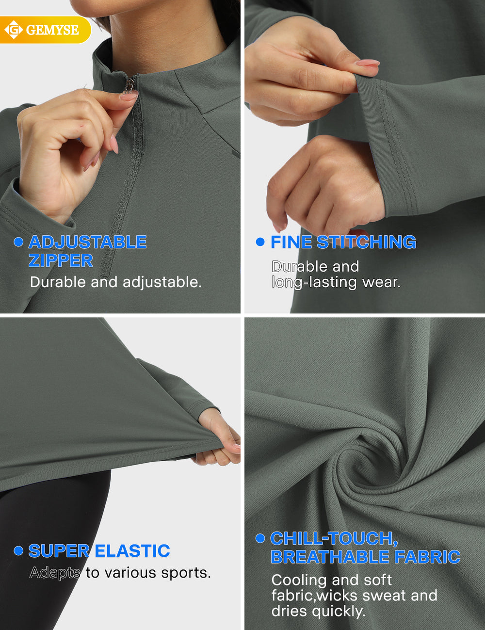 GEMYSE® Women's 1/4 Zip Pullover Shirts Long Sleeve Workout Tops Quick Dry Casual Rash Guard Shirts